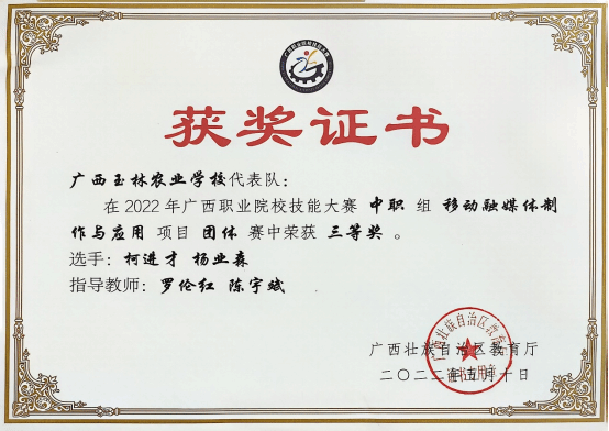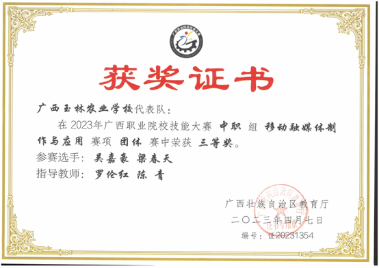 2023年广西职业院校技能大赛《移动融媒体制作与应用》三等奖获奖学生