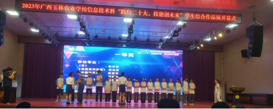 颁发获取综合作品一等奖的学生