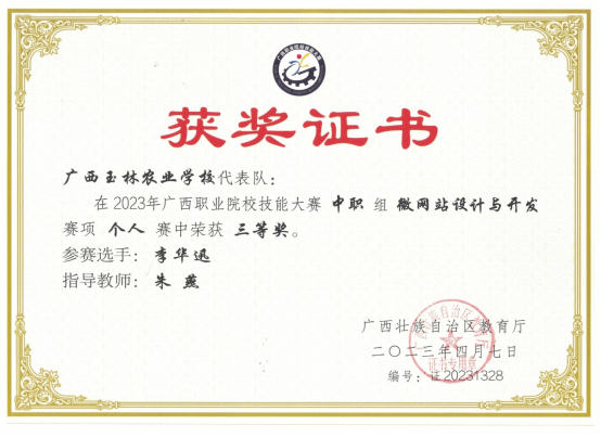 2023年广西职业院校技能大赛微网站设计与开发三等奖