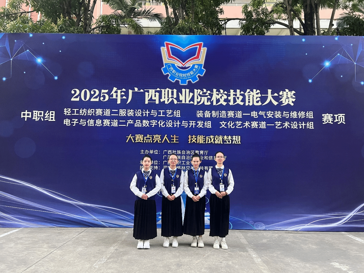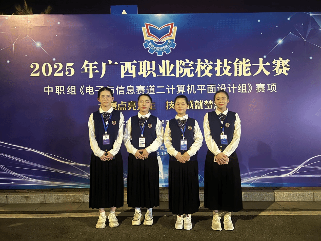 信息技术科在教学中通过实习实践、学生兴趣班、到企业进行跟岗实习实践等多种方式,进一步加强对学生动手能力和职业素质的培养,形成了以自治区级技能大赛为梯队的参赛队伍,教师指导学生参加2025年广西职业院校技能大赛中,获得3个金奖,5个银奖,5个铜奖的成绩。